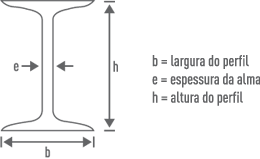 | Bitola (h x b) | Alma | Espessura da alma (e) | Peso teórico kg/m |